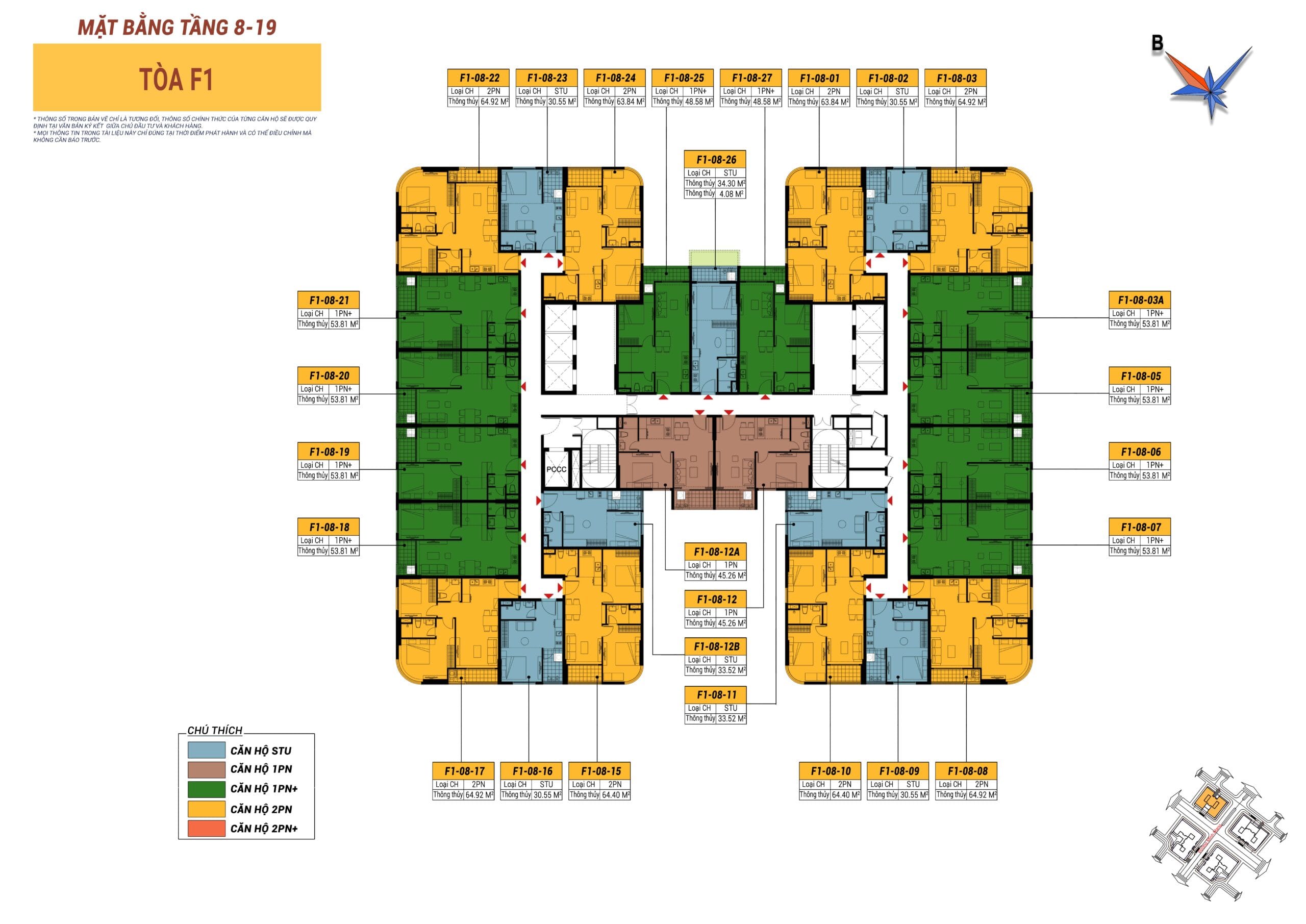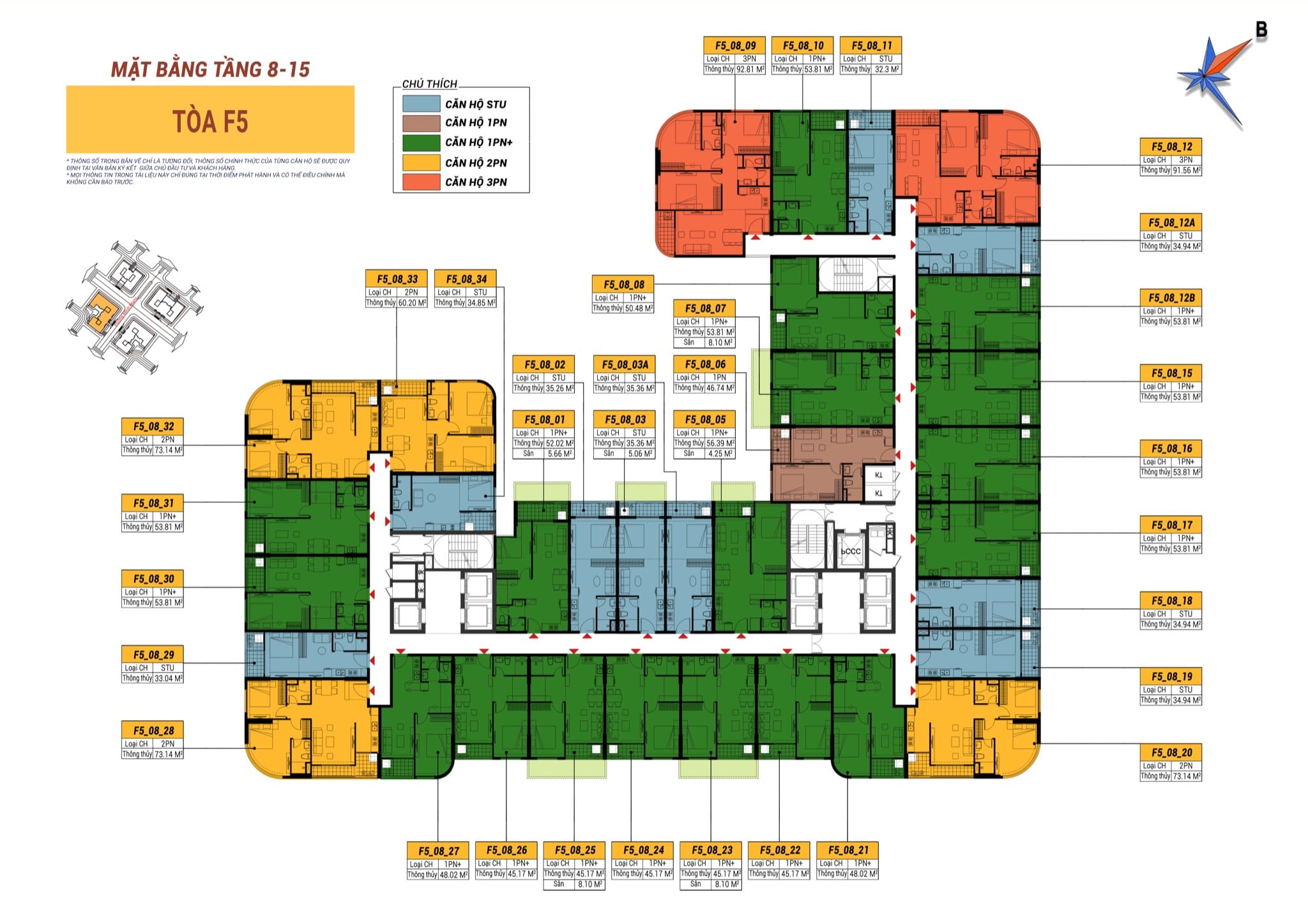 | F1 | CH05 – 1PN+ | 53,8 | 3.4 tỷ | 3.2 tỷ | 2.8 tỷ |